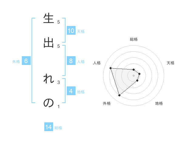 生出 れのさんの総格は14画の1点!