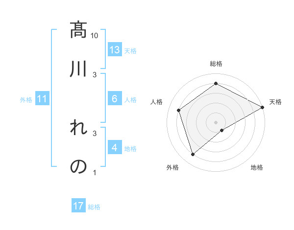 髙川 れのさんの天格は13画の5点!