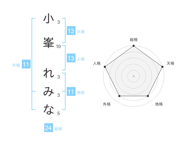 小峯 れみなさんの天格は13画の5点!