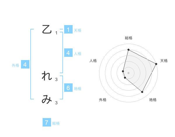 乙 れみさんの総格は7画の4点!