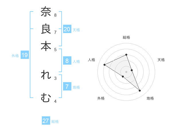 奈良本 れむさんの総格は27画の3点!