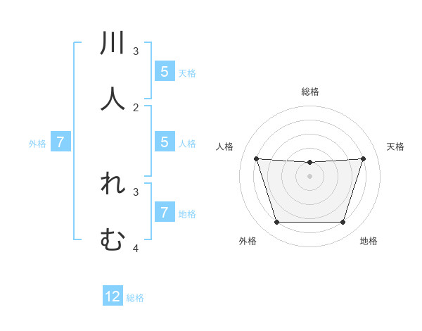 川人 れむさんの外格は7画の4点!