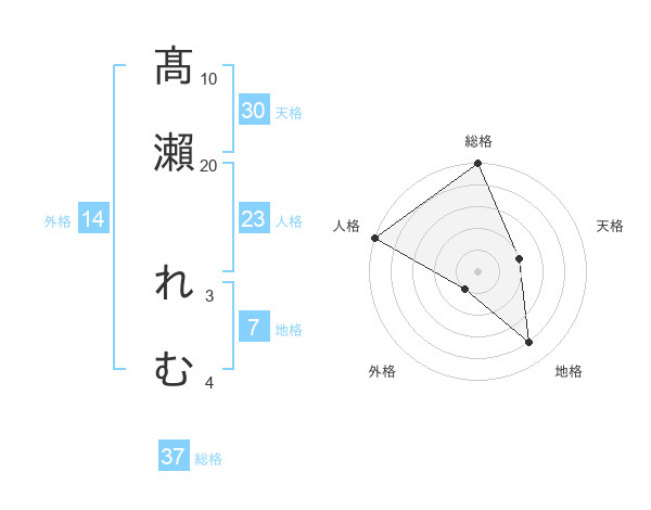 髙瀨 れむさんの総格は37画の5点!