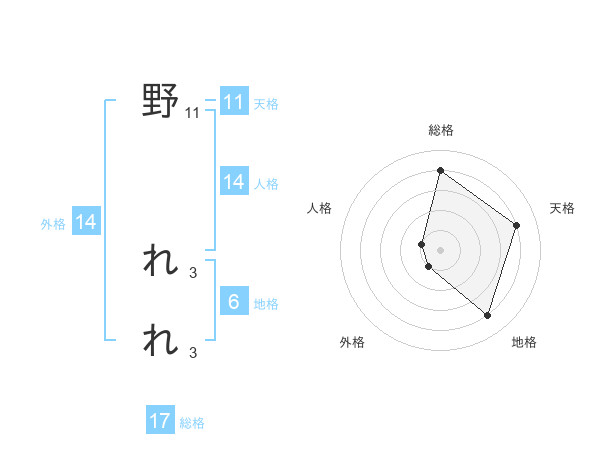 野 れれさんの総格は17画の4点!