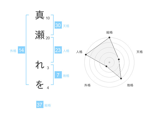 真瀬 れをさんの総格は37画の5点!