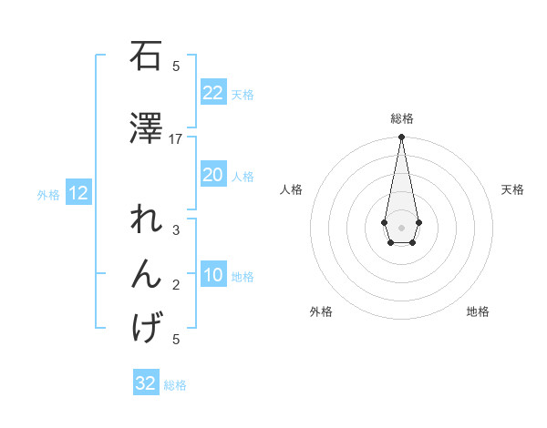 石澤 れんげさんを姓名の画数から五運を鑑定