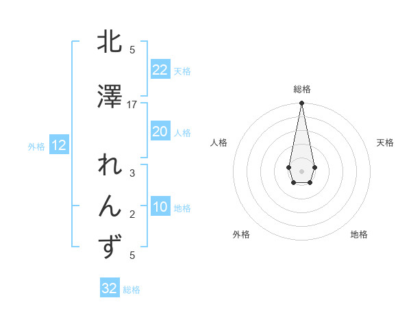 北澤 れんずさんを姓名の画数から五運を鑑定