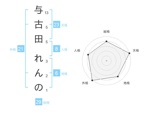 与古田 れんのさんの天格は23画の5点!