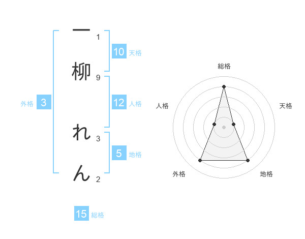 一柳 れんさんの総格は15画の4点!