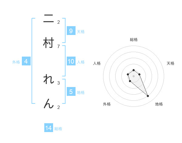 二村 れんさんの地格は5画の4点!