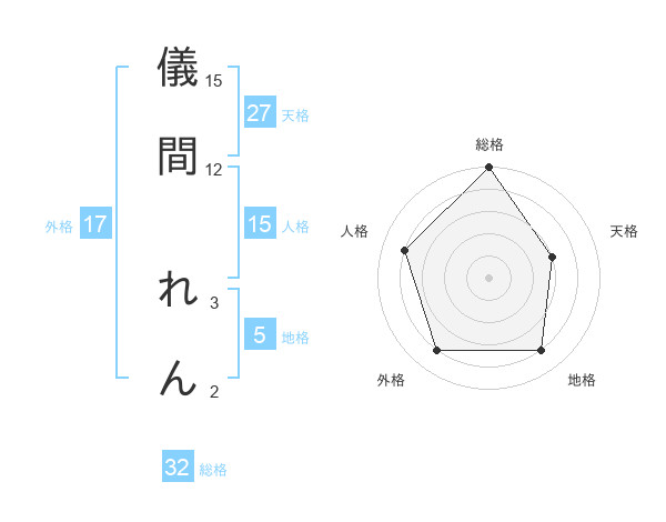 儀間 れんさんの総格は32画の5点!