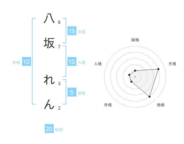 八坂 れんさんの天格は15画の4点!