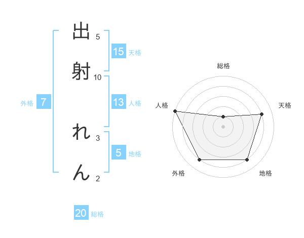 出射 れんさんの総格は20画の1点!