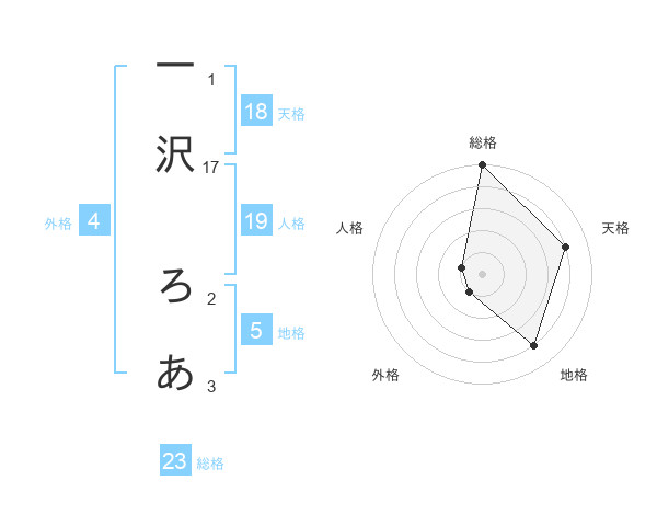 一沢 ろあさんの総格は23画の5点!
