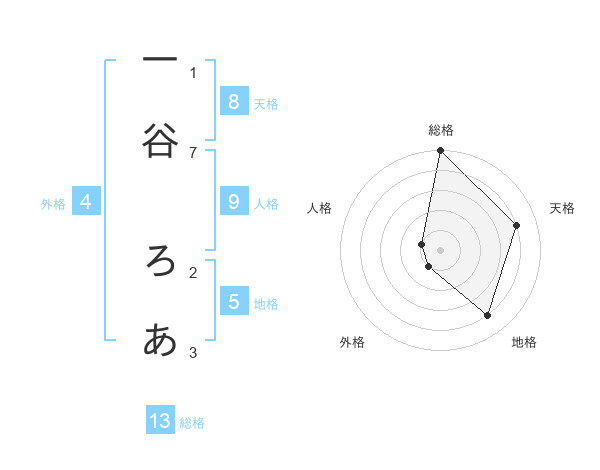 一谷 ろあさんを姓名の画数から五運を鑑定