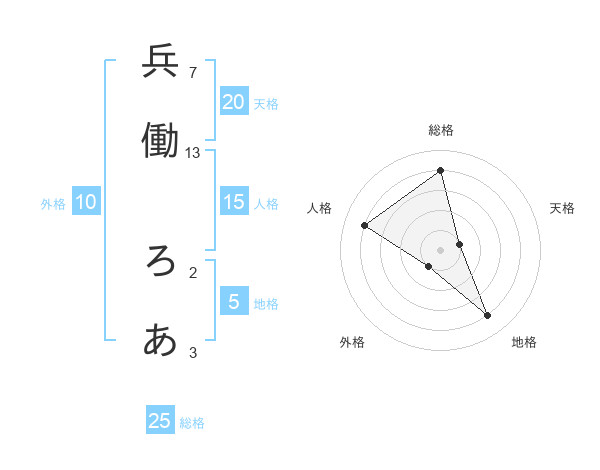 兵働 ろあさんを姓名の画数から五運を鑑定