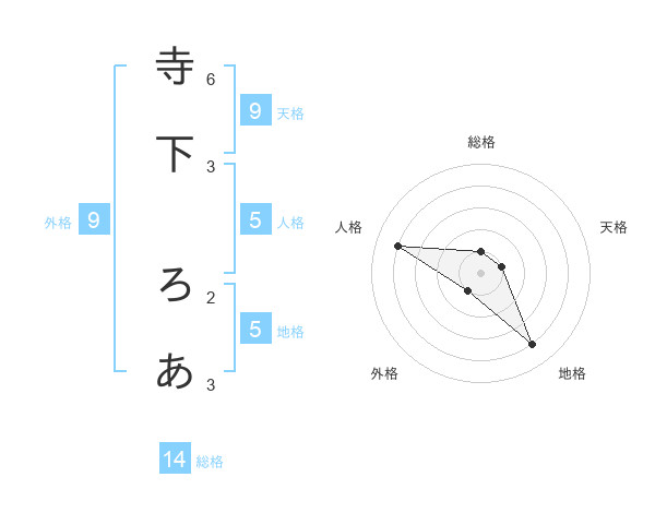 寺下 ろあさんの総格は14画の1点!