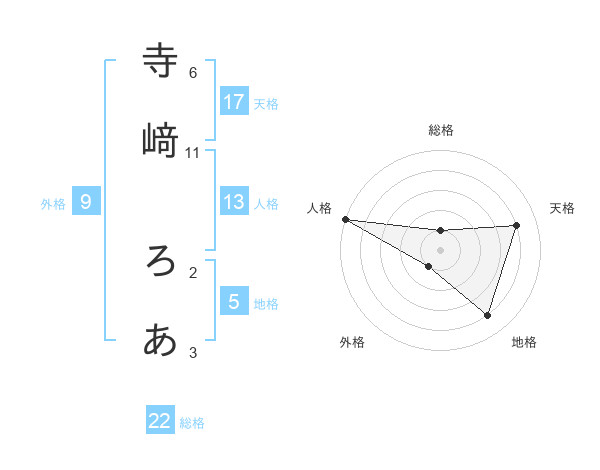 寺﨑 ろあさんの総格は22画の1点!