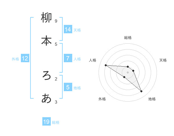 柳本 ろあさんを姓名の画数から五運を鑑定