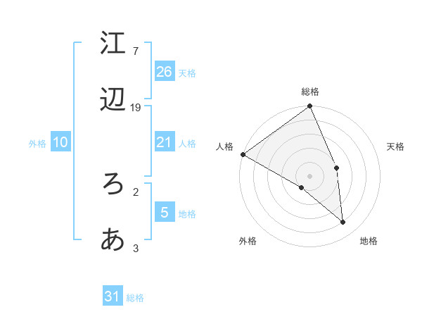 江辺 ろあさんの総格は31画の5点!