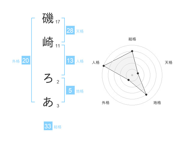 磯崎 ろあさんを姓名の画数から五運を鑑定
