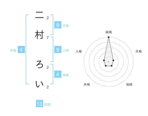 二村 ろいさんの総格は13画の5点!