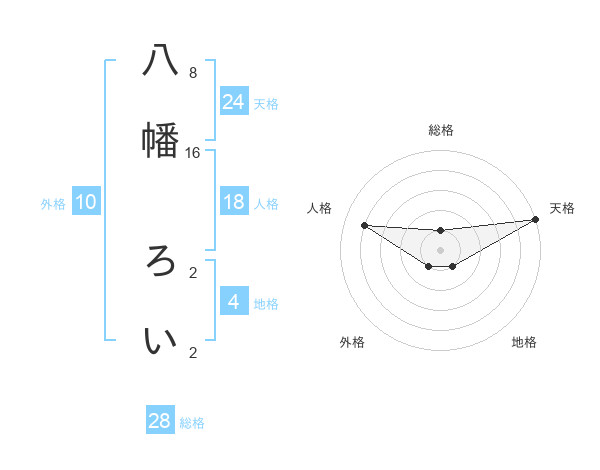 八幡 ろいさんの天格は24画の5点!