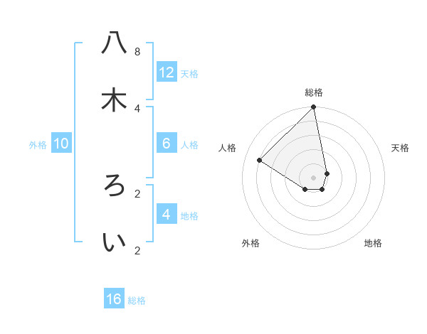八木 ろいさんの総格は16画の5点!