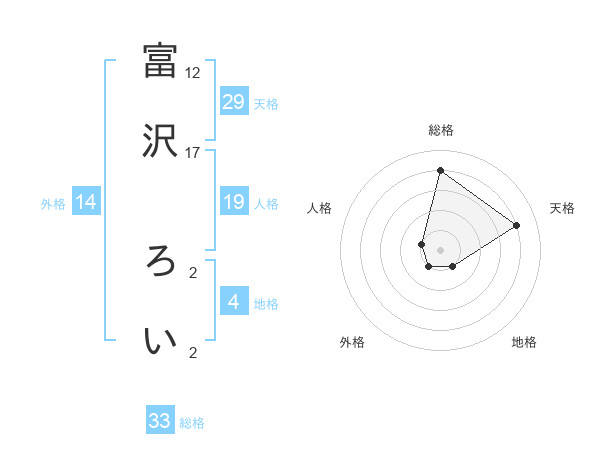 富沢 ろいさんの総格は33画の4点!