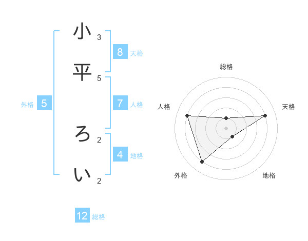 小平 ろいさんの総格は12画の1点!