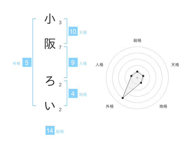 小阪 ろいさんを姓名の画数から五運を鑑定