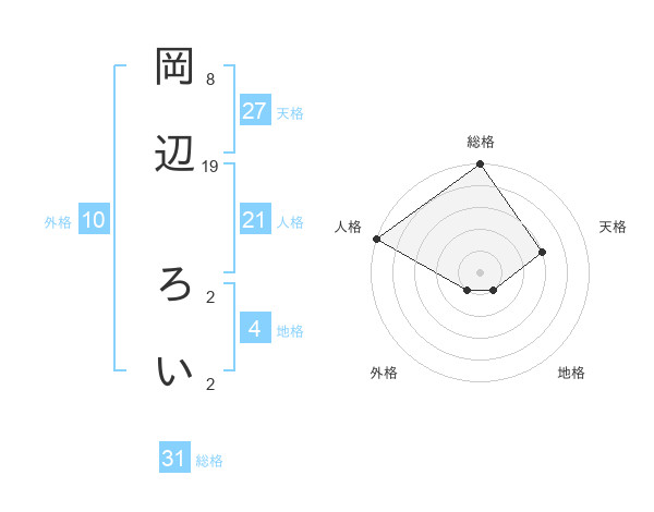 岡辺 ろいさんを姓名の画数から五運を鑑定