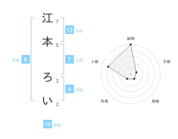 江本 ろいさんの総格は16画の5点!