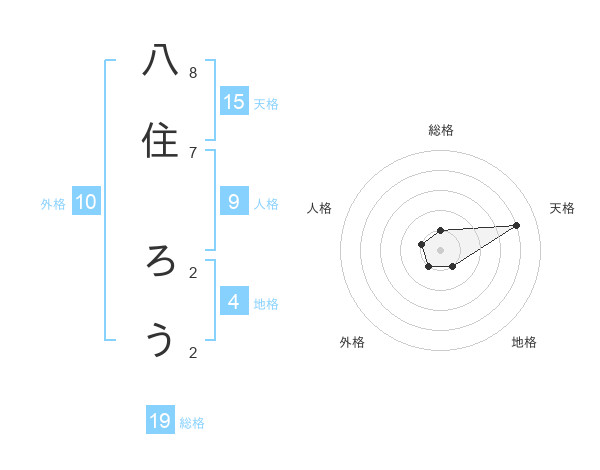 八住 ろうさんの総格は19画の1点!