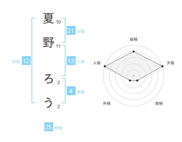夏野 ろうさんの総格は25画の4点!