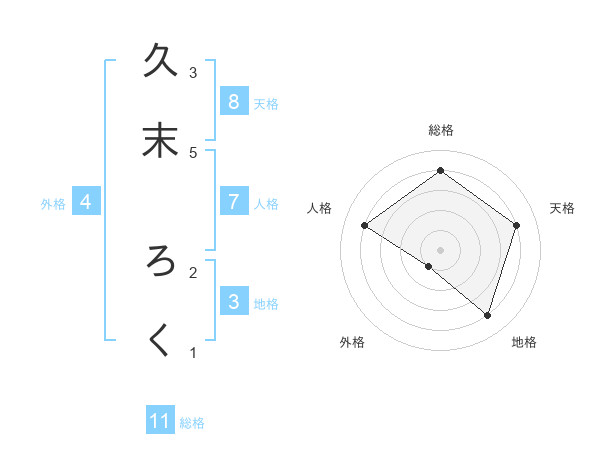 久末 ろくさんの総格は11画の4点!
