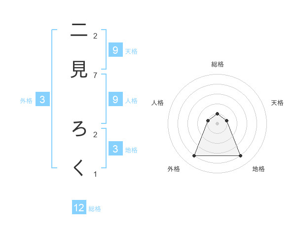 二見 ろくさんの天格は9画の1点!