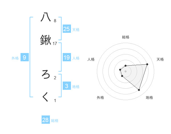 八鍬 ろくさんの総格は28画の1点!