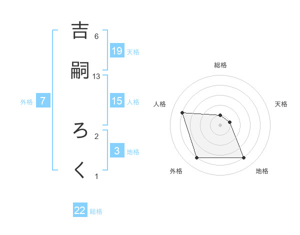 吉嗣 ろくさんの総格は22画の1点!