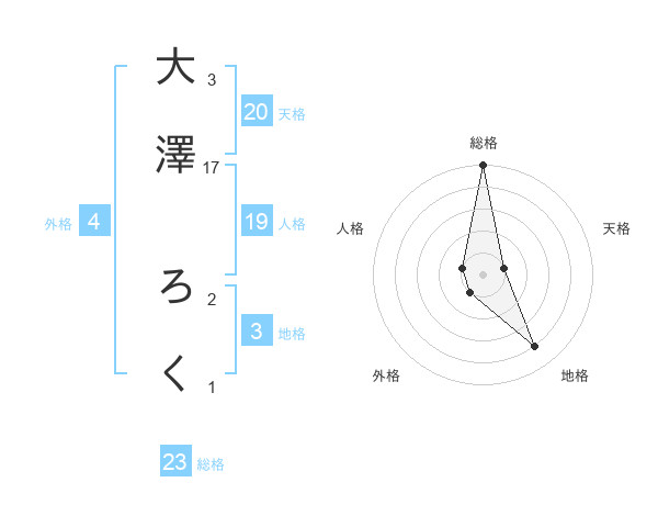 大澤 ろくさんを姓名の画数から五運を鑑定
