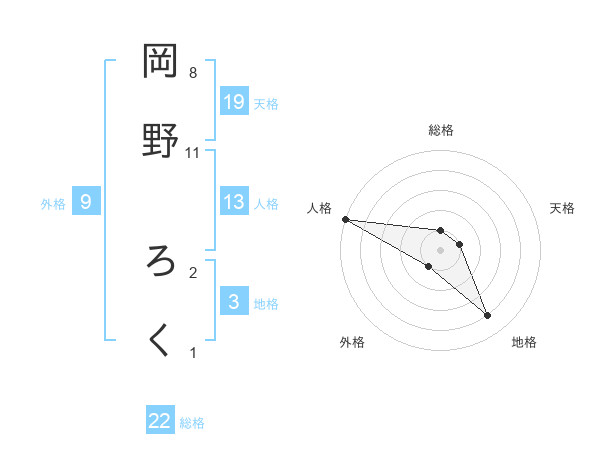 岡野 ろくさんの総格は22画の1点!