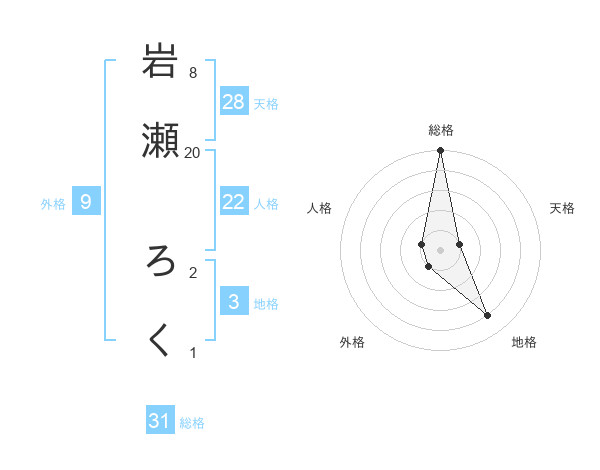岩瀬 ろくさんの総格は31画の5点!
