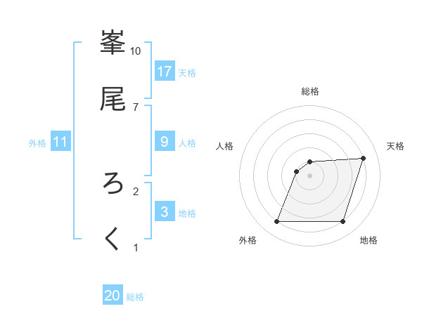 峯尾 ろくさんを姓名の画数から五運を鑑定