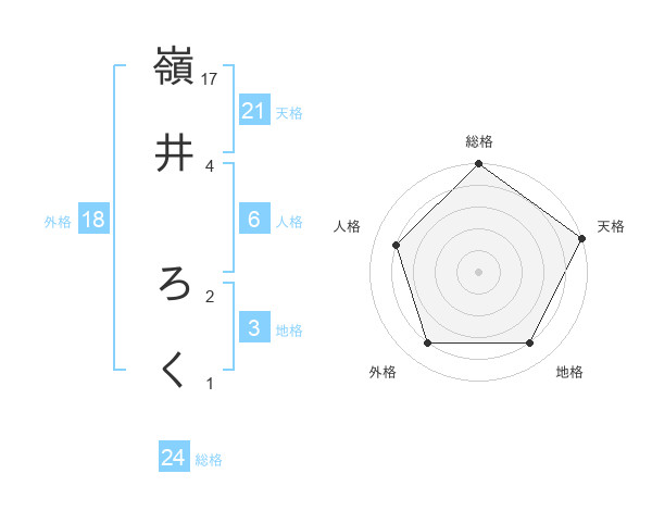 嶺井 ろくさんを姓名の画数から五運を鑑定