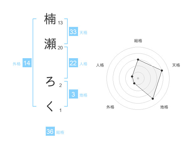 楠瀬 ろくさんの天格は33画の4点!