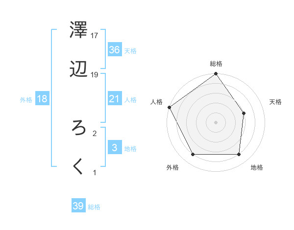 澤辺 ろくさんの総格は39画の5点!