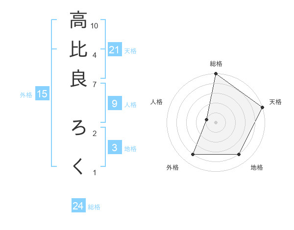 高比良 ろくさんを姓名の画数から五運を鑑定