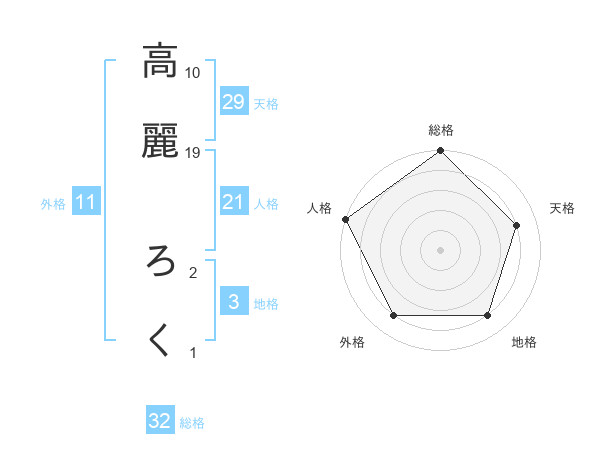 高麗 ろくさんの総格は32画の5点!