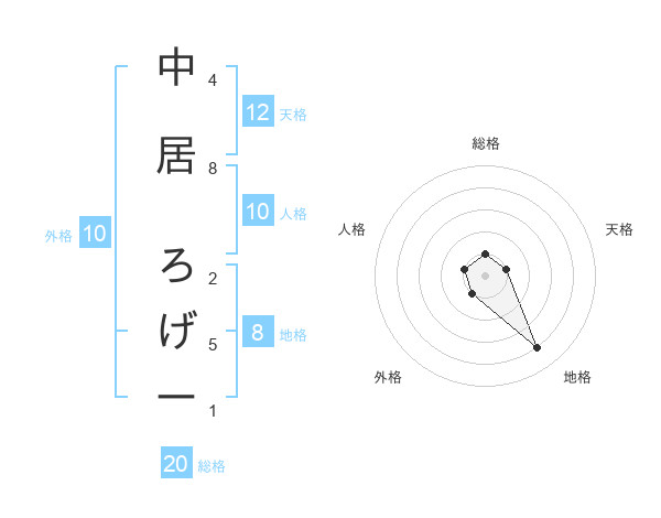 中居 ろげーさんを姓名の画数から五運を鑑定