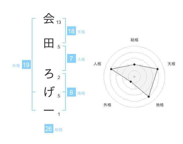 会田 ろげーさんを姓名の画数から五運を鑑定